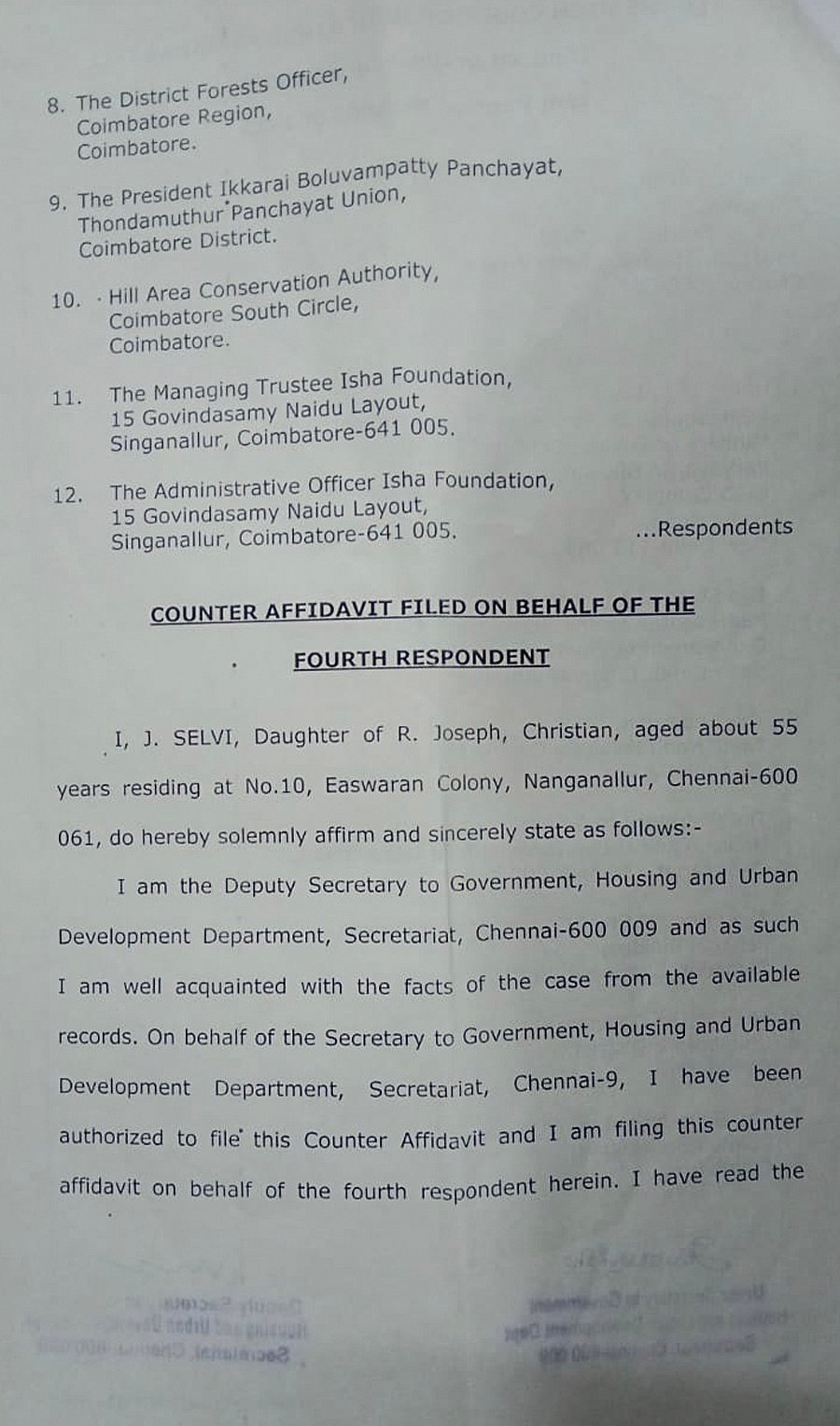 उस समय, के मुकिया उप निदेशक, नगर और देश नियोजन विभाग, कोयंबटूर थे। ईशा के आदेशों की अवहेलना करने पर उनके विभाग ने उनके खिलाफ कार्रवाई क्यों नहीं की? "नोटिस जारी करने के एक महीने बाद मेरा तबादला कर दिया गया," उन्होंने जवाब दिया। "मुझे नहीं पता कि उसके बाद क्या हुआ। मुझे नहीं पता कि उन्होंने मंजूरी ली है या नहीं।”